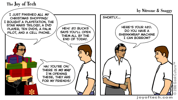 Welcome to the Joy of Tech... by Nitrozac and Snaggy. It's a little bit simpler in style than our other comic After Y2K, and a little more topical. We hope you enJoy!